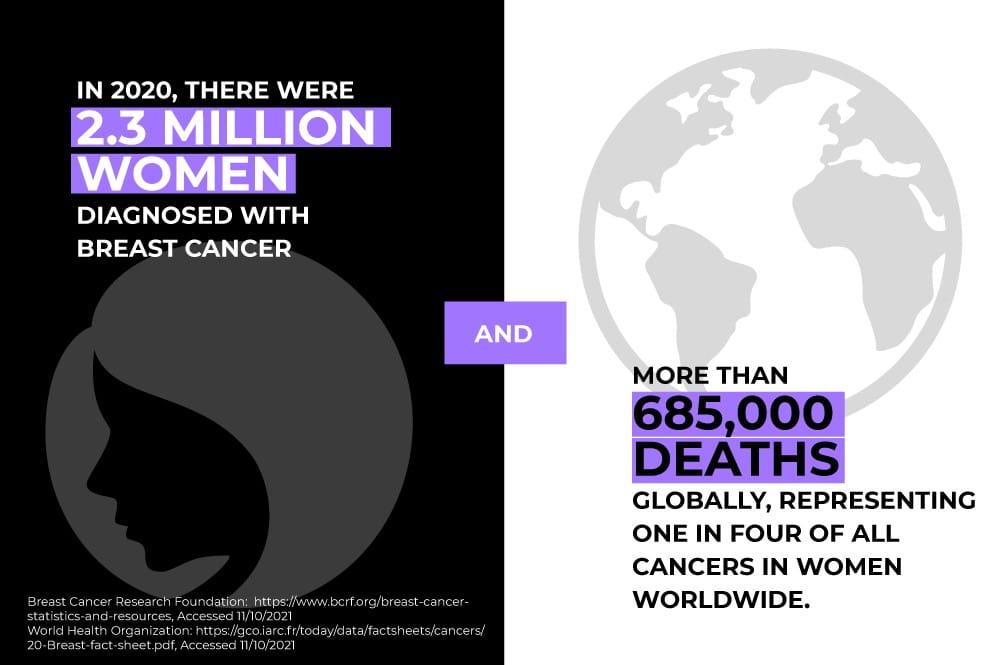The statistics are sobering: breast cancer has now overtaken lung cancer as the world’s most common cancer4, and it also tops the list of newly diagnosed cases each year5. But with advances and progress made in risk assessment, screening, and therapies, most women today not only survive their breast cancer diagnosis, they do so with less invasive surgery and fewer toxic treatments, like chemotherapy.6