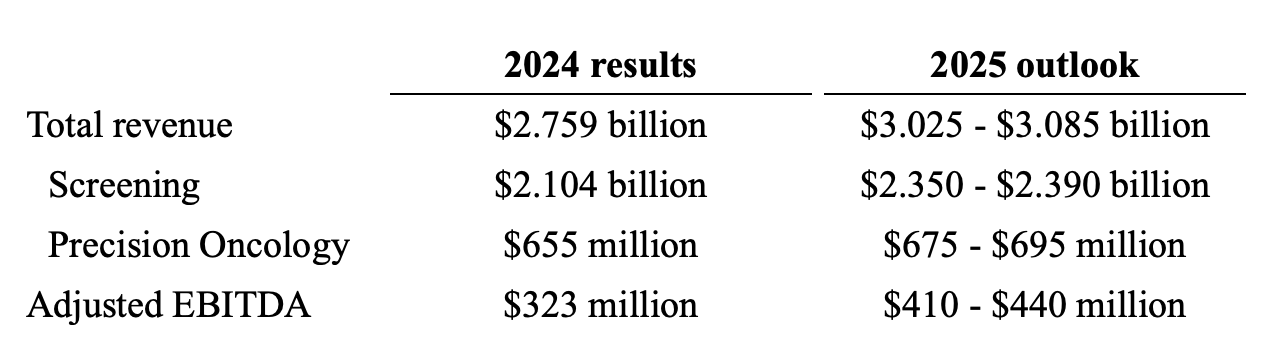 • Total 2024 revenue of $2.76 billion, an increase of 10%, or 11% on a core revenue basis, with Screening revenue of $2.10 billion and Precision Oncology revenue of $655 million